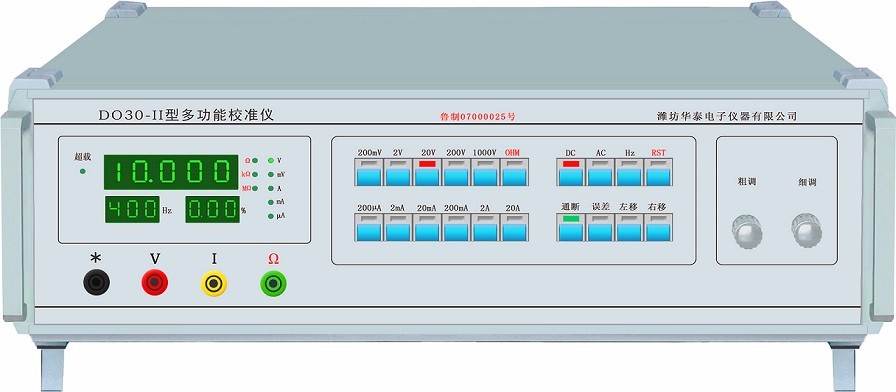 DO30-Ⅱ型多功能校准仪(以下简称校准仪)是具有五位数码显示输出值、被检表误差、交流频率等参数的交直流电压、电流校准源。另设8档标准电阻器组,方便校准万用表电阻档。备有RS232接口实现数据自动处理功能。