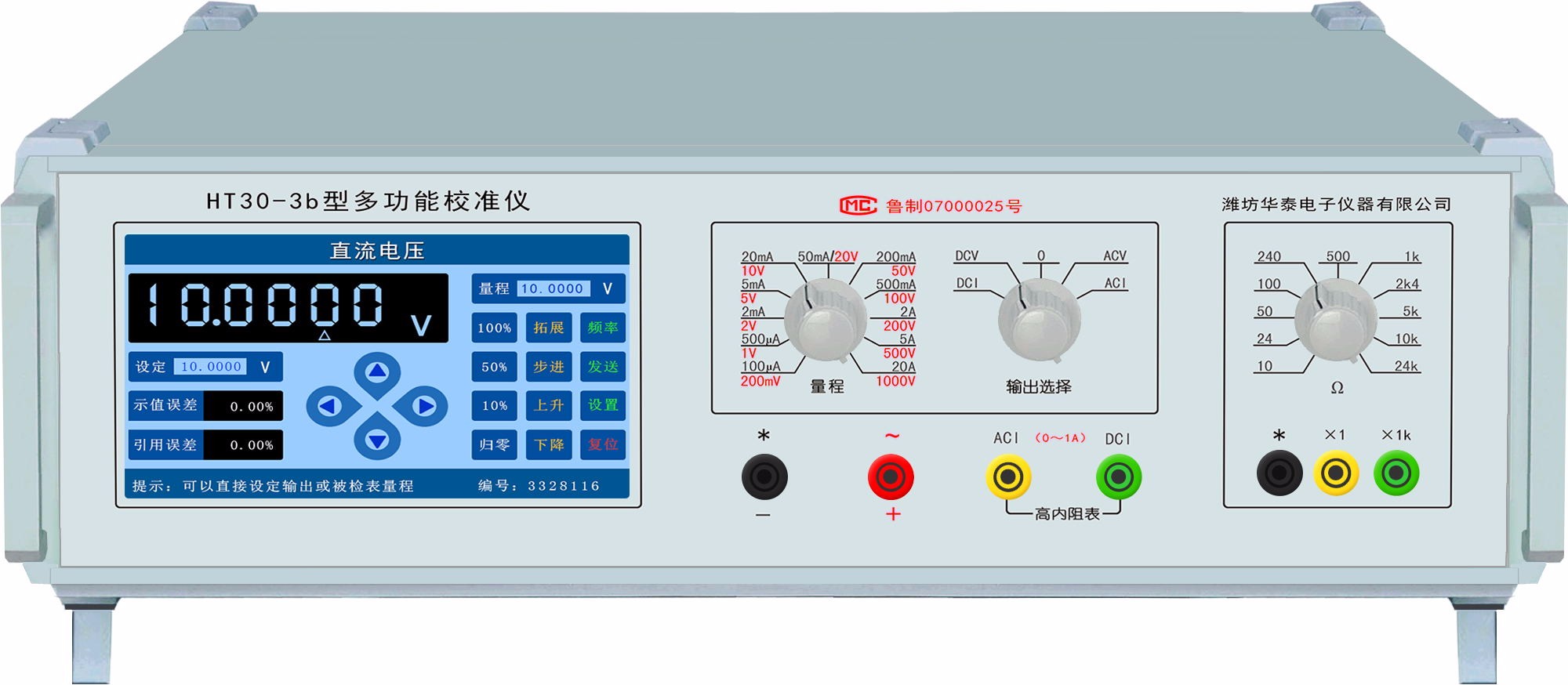 DO30-3b型多功能校准仪(以下简称校准仪)采用7吋彩色触摸屏,六位数字显示输出值、被检表误差、输出量百分比、被检表满度值、步进值、频率等参数的交直流电压、电流校准源。另设22档标准电阻器组,方便校准万用表电阻档。备有RS232接口实现数据自动处理功能。